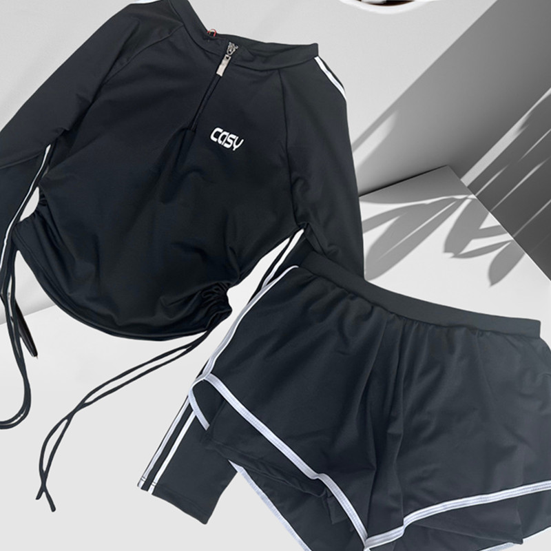 Set Đồ Bơi Nữ Rời Đùi Dài Tay Đi Biển Đi Bơi Chất liệu Polyester 88%, mật độ dệt vừa Áo có sẵn lớp đệm, hông áo có thể rút lên làm croptop cá tính