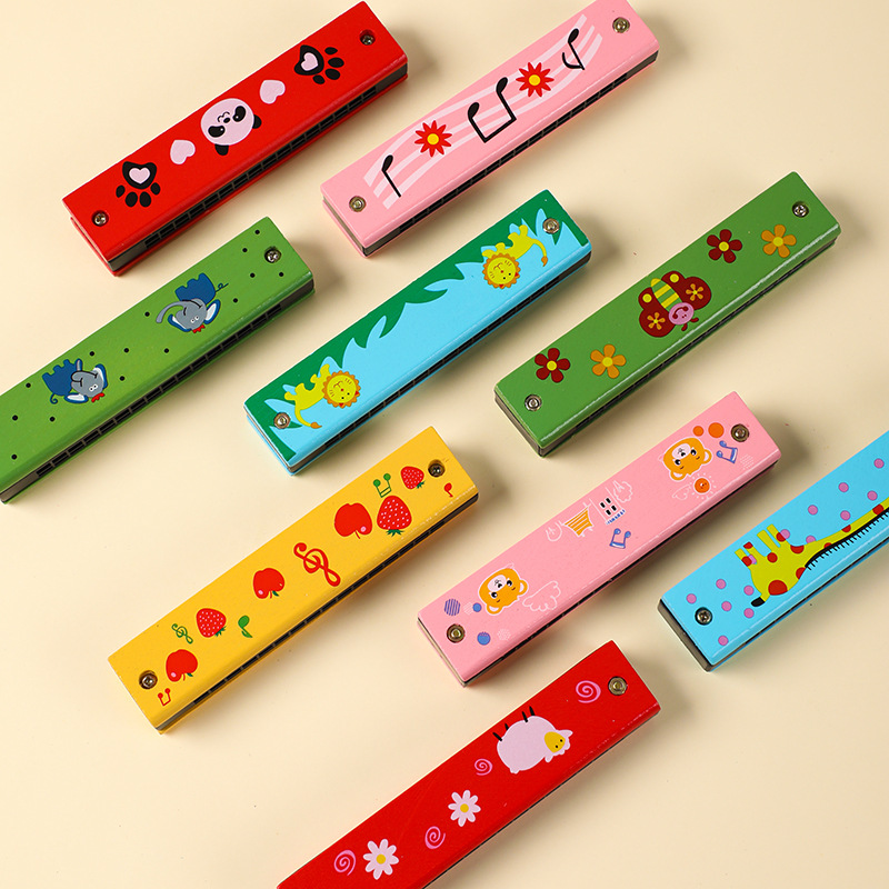 Đồ chơi âm nhạc Kèn harmonica bằng gỗ 32 lỗ, họa tiết dễ thương cho trẻ em - Space Kids