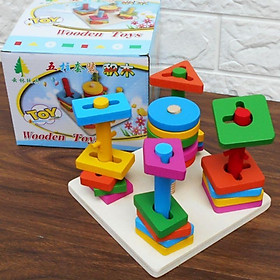 - Bộ đồ chơi xếp hình 5 trụ cột bằng gỗ giúp bé linh hoạt xử lí giữa tay , mắt và bộ não nhờ các trở ngại trên mỗi trụ cột.