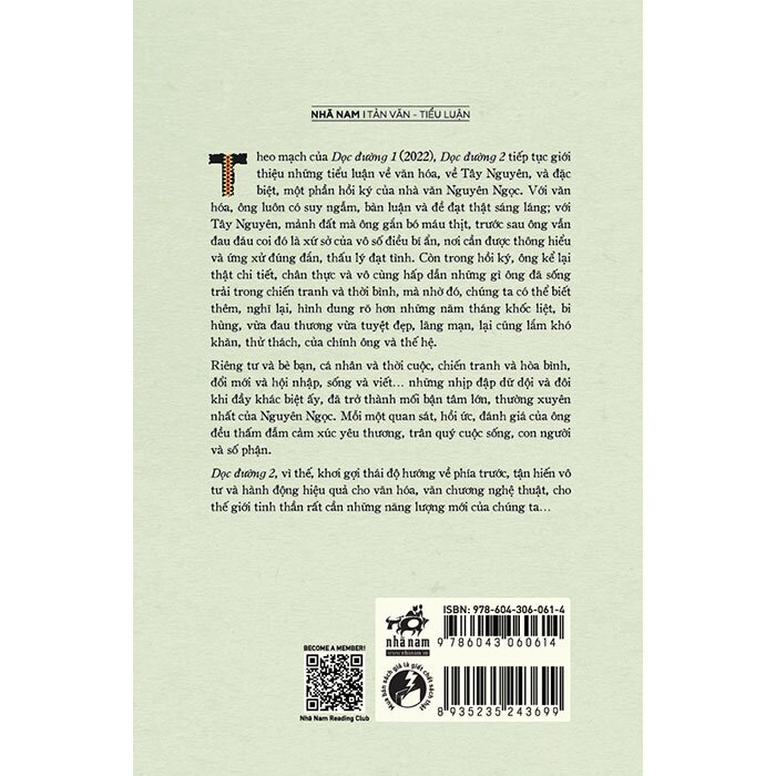 Theo mạch của Dọc đường - 1 (2022), Dọc đường 2 tiếp tục giới thiệu những tiểu luận về văn hóa, về Tây Nguyên, và đặc biệt, một phần hồi ký của nhà văn Nguyên Ngọc. Với văn hóa, ông luôn có suy ngẫm, bàn luận và đề đạt thật sáng láng; với Tây Nguyên, mảnh đất mà ông gắn bó máu thịt, trước sau ông vẫn đau đáu coi đó là xứ sở của vô số điều bí ẩn, nơi cần được thông hiểu và ứng xử đúng đắn, thấu lý đạt tình. Còn trong hồi ký, ông kể lại thật chi tiết, chân thực và vô cùng hấp dẫn những gì ông đã sống trải trong chiến tranh và thời bình, mà nhờ đó, chúng ta có thể biết thêm, nghĩ lại, hình dung rõ hơn những năm tháng khốc liệt, bi hùng, vừa đau thương vừa tuyệt đẹp, lãng mạn, lại cũng lắm khó khăn, thử thách, của chính ông và thế hệ.