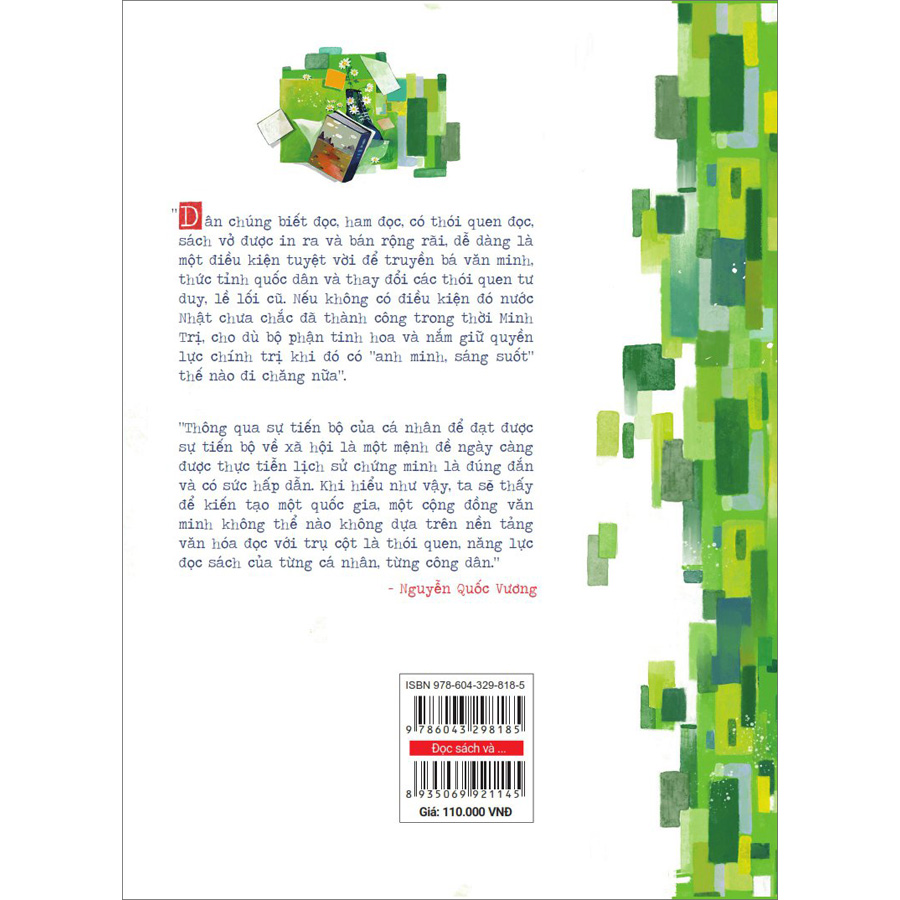 “Dân chúng biết đọc, ham đọc, có thói quen đọc, sách vở được in ra và bán rộng rãi, dễ dàng là một điều kiện tuyệt vời để truyền bá văn minh, thức tỉnh quốc dân và thay đổi các thói quen tư duy, lề lối cũ. Nếu không có điều kiện đó nước Nhật chưa chắc đã thành công trong thời Minh Trị, cho dù bộ phận tinh hoa và nắm giữ quyền lực chính trị khi đó có “anh minh, sáng suốt” thế nào đi chăng nữa”.