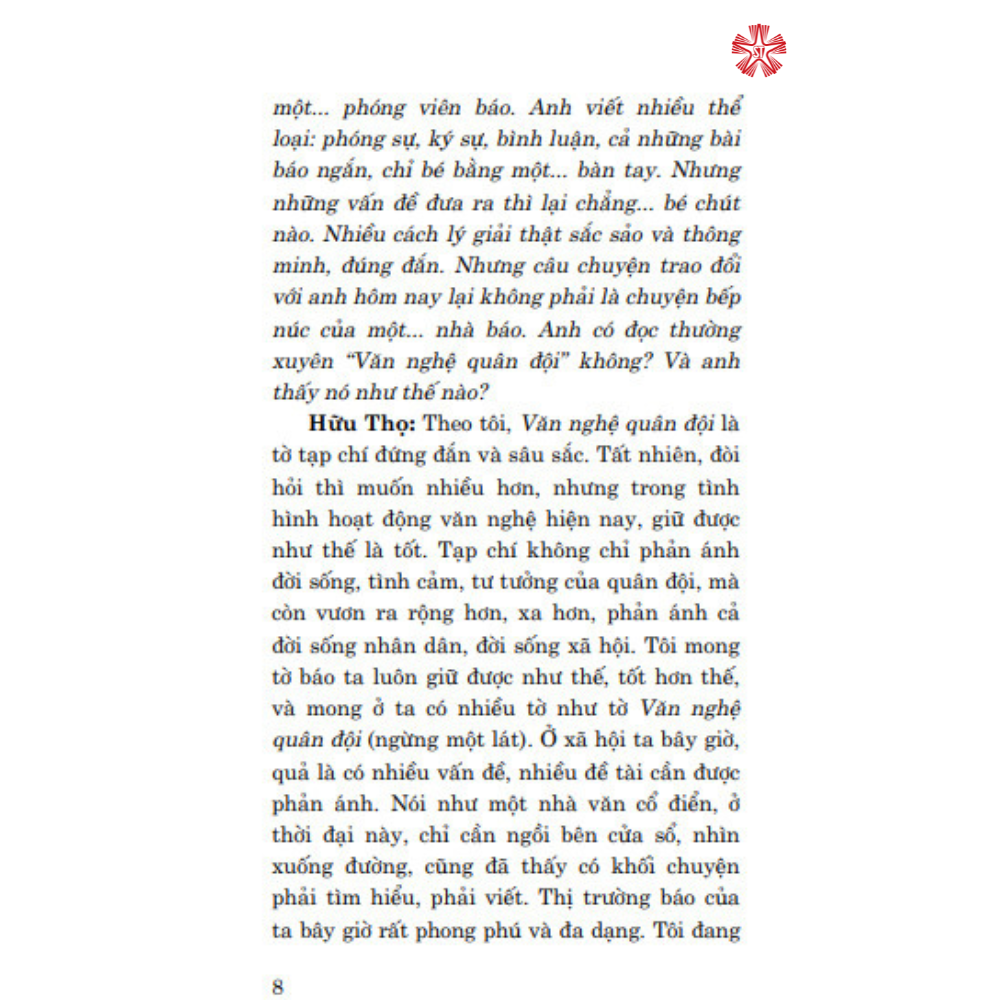 Cuốn sách xuất bản lần đầu năm 2012, nay do nhu cầu của đông đảo bạn đọc, đặc biệt là các sinh viên chuyên ngành báo chí, Nhà xuất bản Chính tả Quốc gia Sự thật cho tái bản cuốn sách trên. Cuốn sách bao gồm 29 chuyên để diễn tả sâu sắc quan điểm, thái độ, chính kiến của Nhà báo Hữu Thọ về các vấn đề thời sự nóng hổi, đồng thời giới thiệu một số phong cách tác nghiệp của các nhà báo khi tiến hành các cuộc phỏng vấn, trao đổi ý kiến với những người có trách nhiệm trong quá trình hoạt động nghề nghiệp. Cuốn sách thực sự bổ ích cho các bạn sinh viên chuyên ngành báo chí, phóng viên, nhà báo trẻ cũng như cung cấp thêm tài liệu cho bạn đọc muốn nghiên cứu quá trình tiến hành đổi mới đất nước, đổi mới báo chí dưới sự lãnh đạo của Đảng.