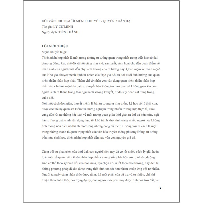 1/Đổi Vận Cho Người Mệnh Khuyết - Quyển Thu Đông I. GIỚI THIỆU SÁCH Sách Đổi Vận Cho Người Mệnh Khuyết Quyển thu đông Lý Cư Minh nói về lý thuyết thuật số, mệnh mỗi