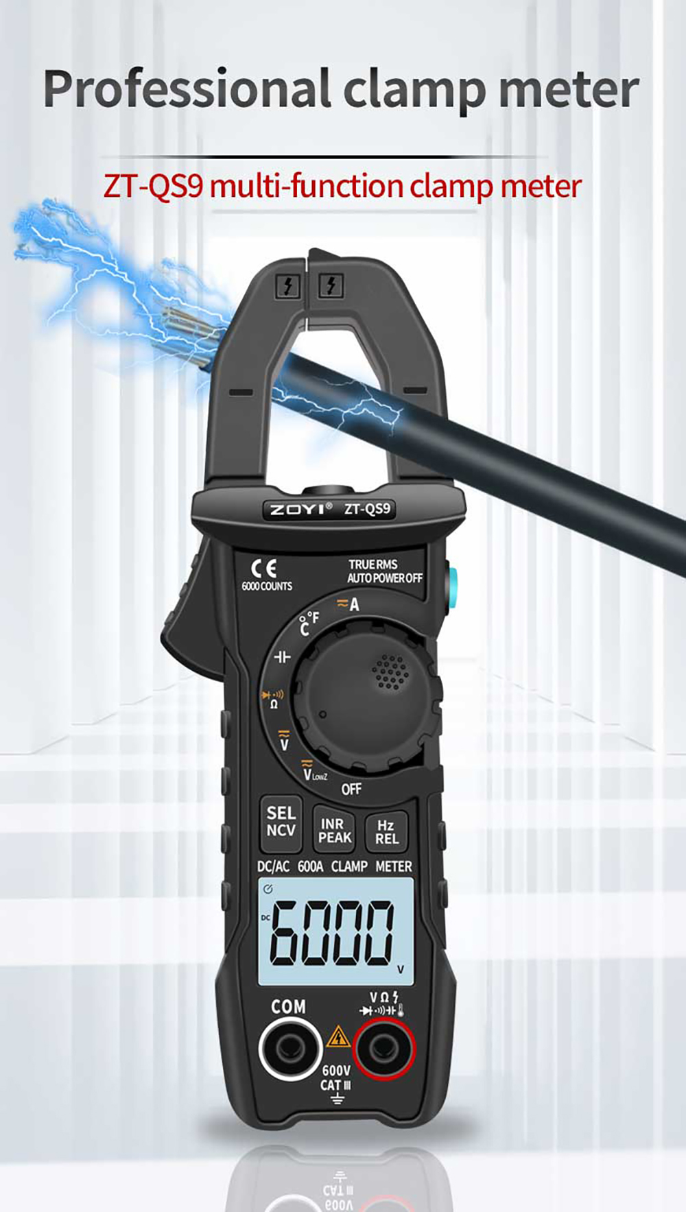 ✨Đồng hồ, ampe kìm ABG zoyi ZT-QS9 đo điện vạn năng kỹ thuật số TRMS 6000 số đếm, bộ kẹp khởi động kỹ thuật số, đo dòng điện AC/DC, đo chống nhiễu