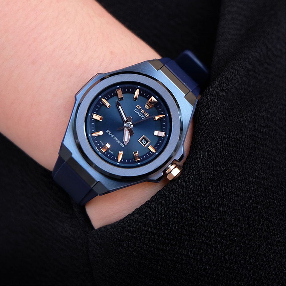 Thiết kế ba kim và một chỉ báo ngày kết hợp với hệ thống năng lượng mặt trời để bạn có thể xem giờ hiện hành suốt cả ngày mà không bị gián đoạn.