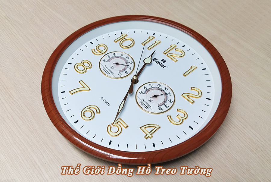 1. ĐẶC ĐIỂM NỔI BẬT: - Đồng hồ Kim trôi số nổi 3D có Dạ Quang và Nhiệt ẩm kế Cơ hình tròn kiểu dáng hiện đại, Viền kiểu Vân Gỗ với đường kính lên