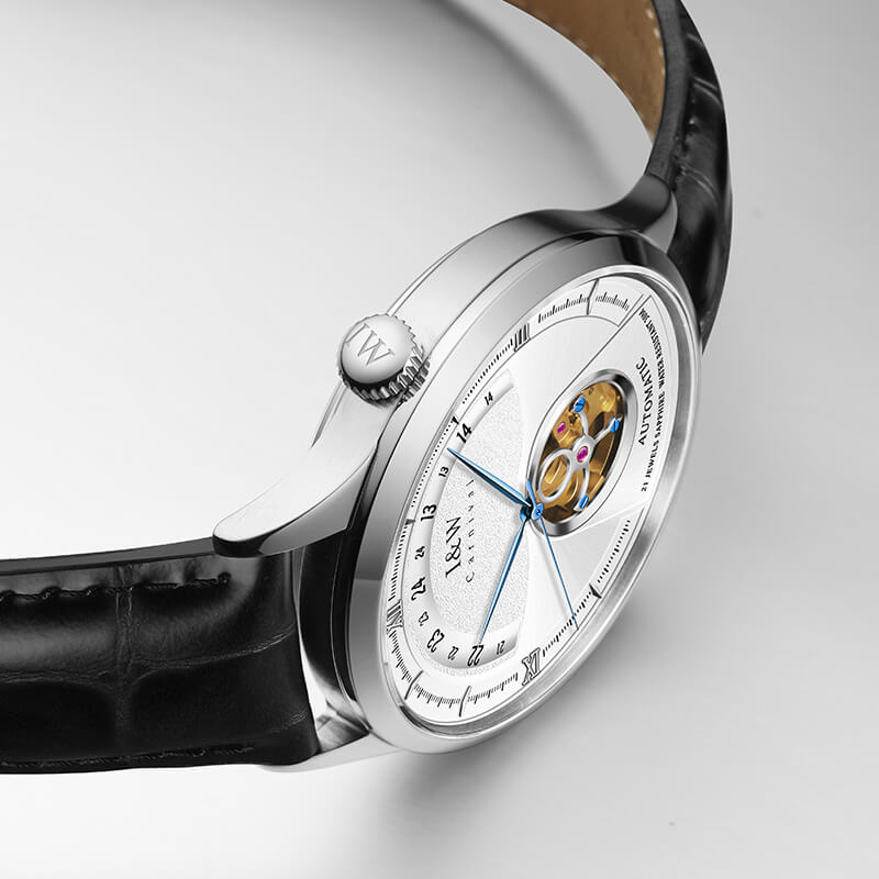 • Không chỉ với vẻ ngoài nịnh mắt, chất lượng bên trong cũng thuộc hàng đỉnh cao với bộ máy Automatic, hoạt động mạnh mẽ với 21 chân kính, trữ cót gần 40 giờ và còn lộ cơ nghệ thuật ở mặt cả mặt trước và mặt sau.
