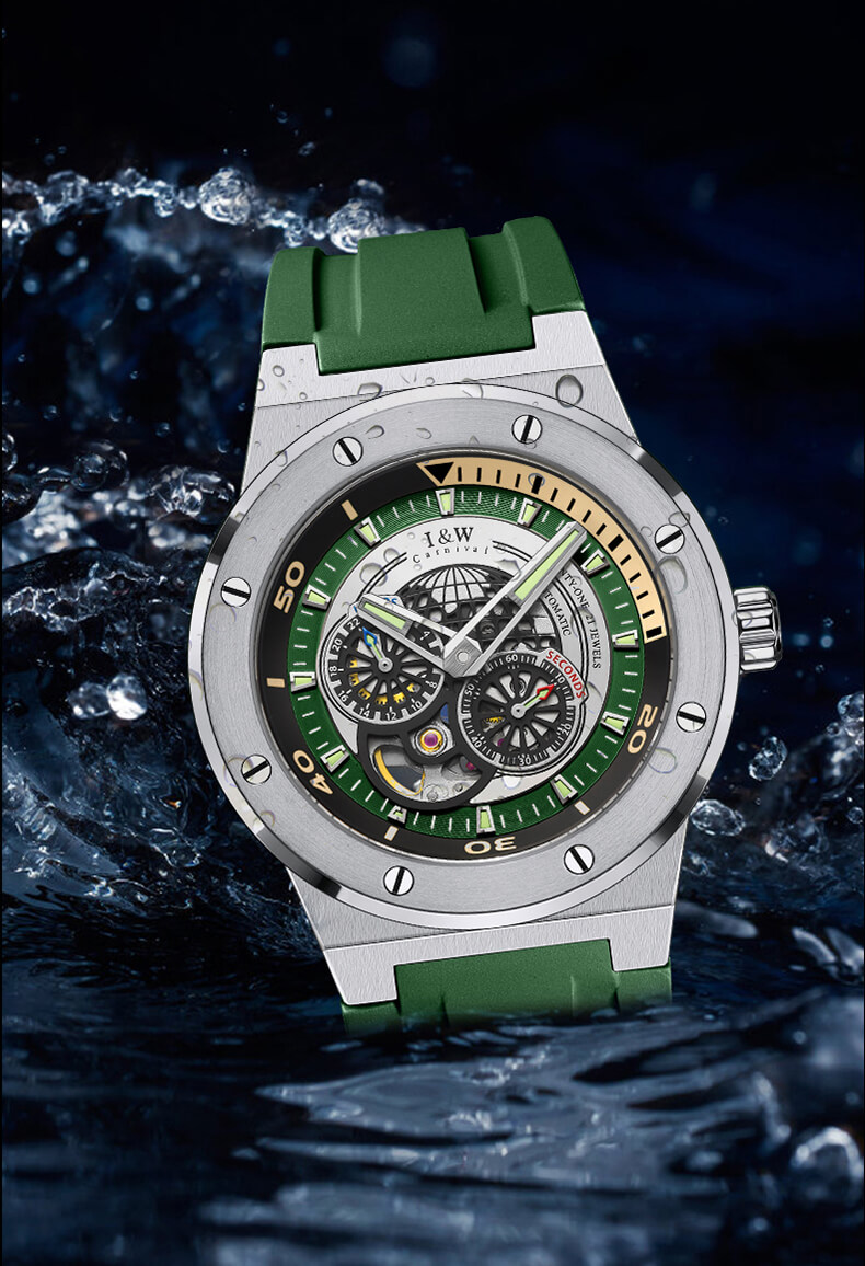 ✨Đồng hồ nam chính hãng IW CARNIVAL IW619G-3 Kính sapphire ,chống xước,Chống nước 50m,Bảo hành 24 tháng,Máy cơ (Automatic),Dây cao su cao cấp,thiết kế lộ cơ thể thao
