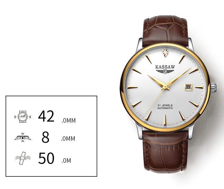 Đồng hồ nam chính hãng Kassaw Thụy Sỹ Thiết kế sang trọng, đẳng cấp cho quý ông Thời gian trữ cót lâu lên đến 40h Chống nước 5ATM, Kính sapphire Toàn bộ máy được làm