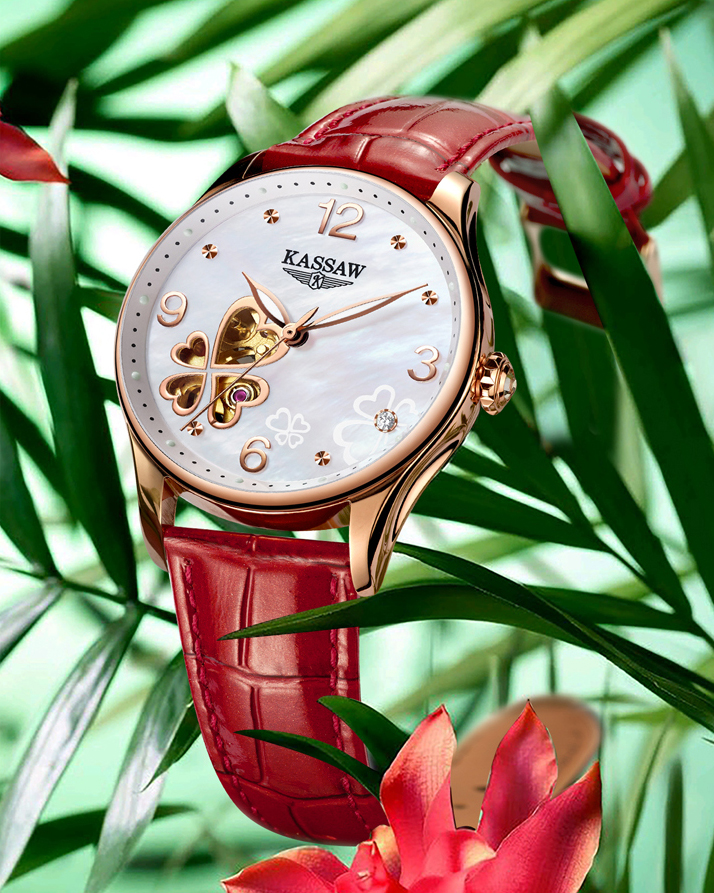 +Chiếc đồng hồ cơ Kassaw Lady Rose chắc chắn sẽ làm hài lòng các cô nàng cá tính, thanh lịch và rất biết "chơi" đồng hồ! +Thiết kế hở tim phá cách kết hợp khéo