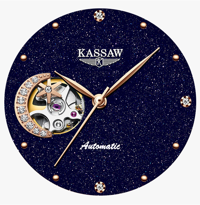 Đồng hồ nữ chính hãng Kassaw Thụy Sỹ Thiết kế hiện đại,sang trọng dành cho phái nữ Thời gian trữ cót lâu lên đến 40h Chống nước 5ATM, Kính sapphire Toàn bộ máy được làm