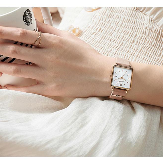 ✨ Đồng hồ nữ Julius Star JS-048 dây da mặt vuông