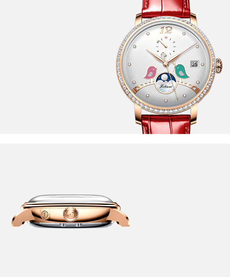 Nhãn hiệu LOBINNI Mã sản phẩm No.2065-1 Giới tính Nữ Kiểu máy Automatic (Máy Cơ) Đường kính mặt 36 mm Độ dày 9,7 mm Chất liệu vỏ Thép không gỉ 316L Chất liệu dây Dây da cao cấp Chất liệu mặt kính Mineral Crystal