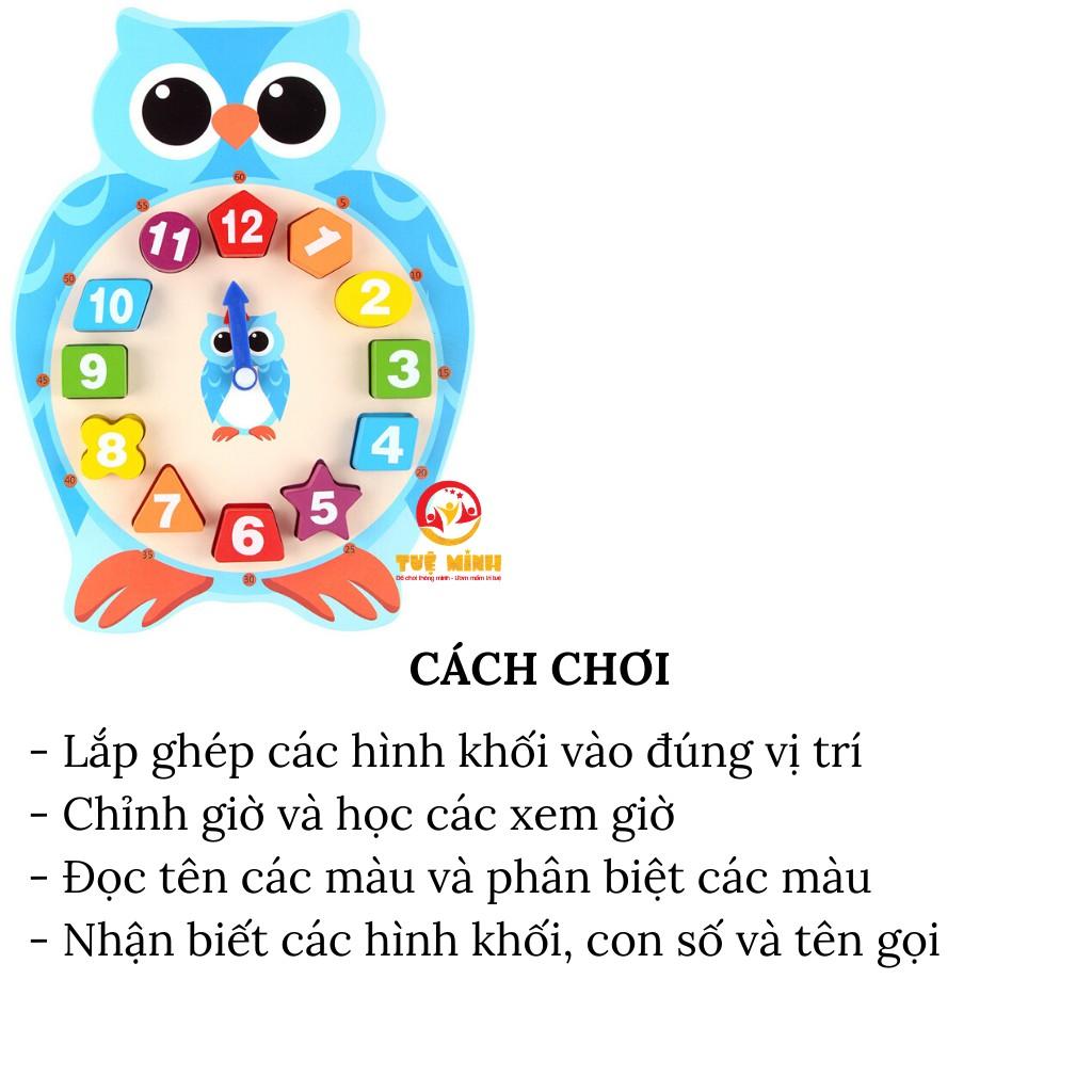 Thông tin chi tiết sản phẩm đồng hồ phân biệt hình khối, màu sắc hình con ếch, con cú Một bộ sản phẩm gồm có: 1 chiếc đồng hồ gỗ có khoét các khối hình