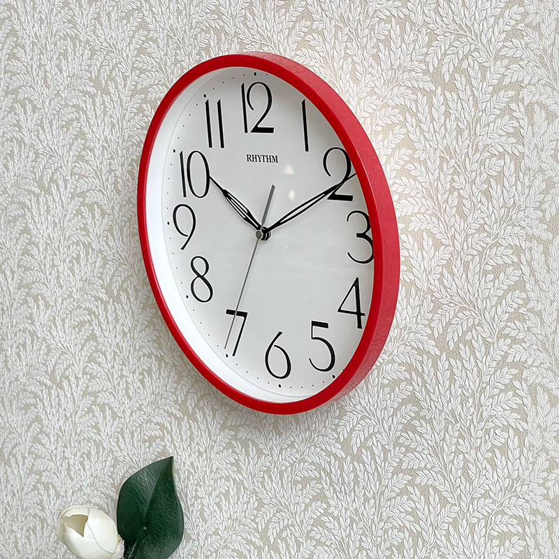 Mua tại TiktokĐồng hồ treo tường Rhythm CMG734NR01, dùng 1 pin tiểu (AA x 1), vỏ nhựa cao cấp màu đỏ, không bạc màu, Kích thước 31.2 x 5.0cm, trọng lượng 710g. Máy kim giật tiết kiệm