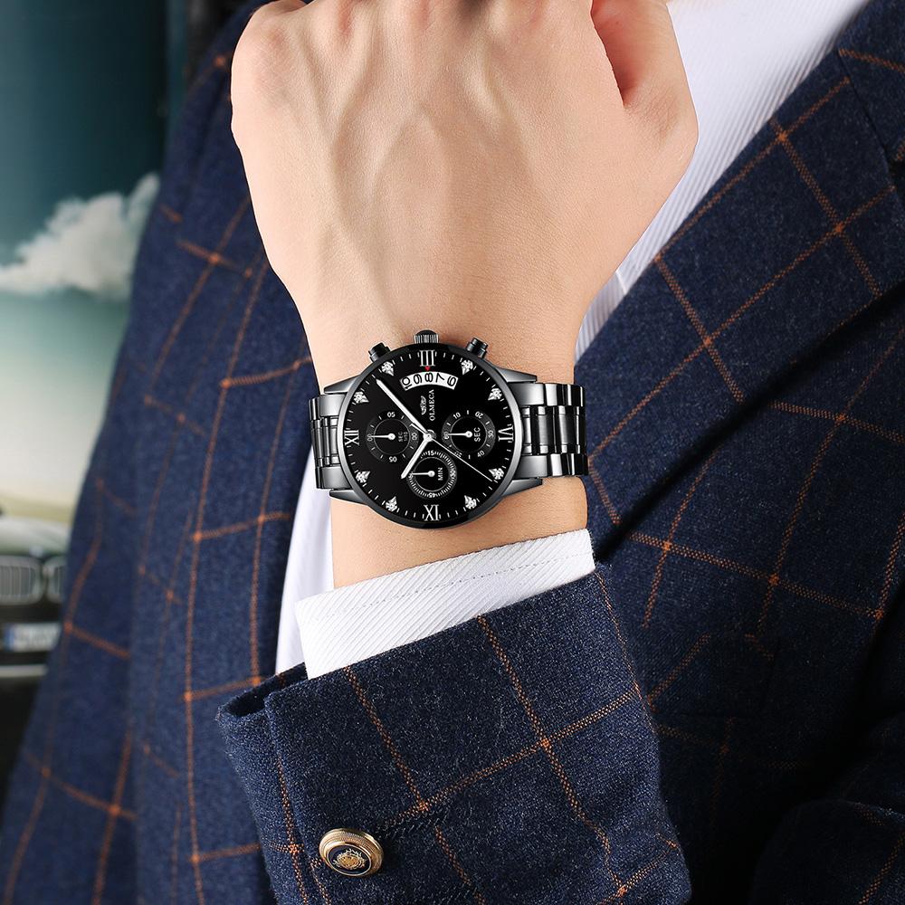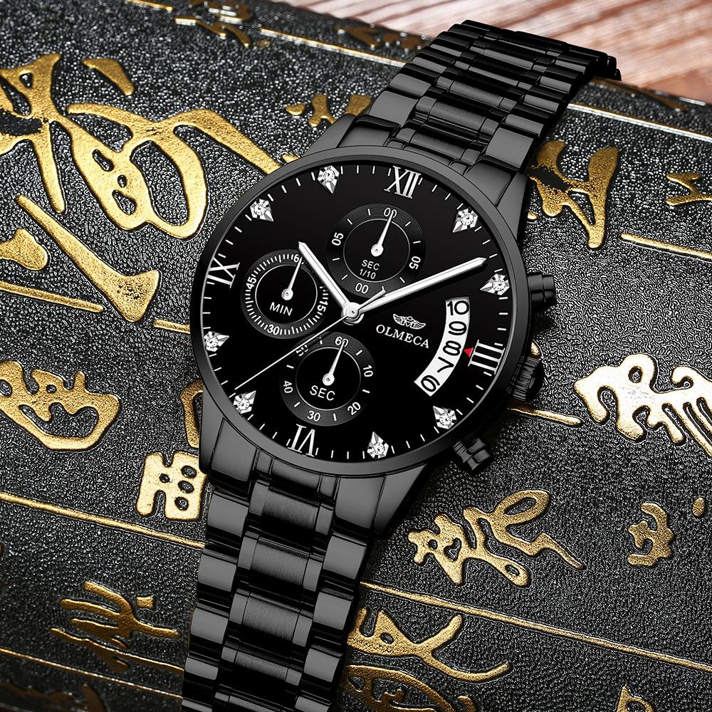 ✨Đồng hồ thạch anh OLMECA 0878M Nam Dây đeo bằng thép không gỉ, đa chức năng 3ATM Màn hình phát sáng Chronograph