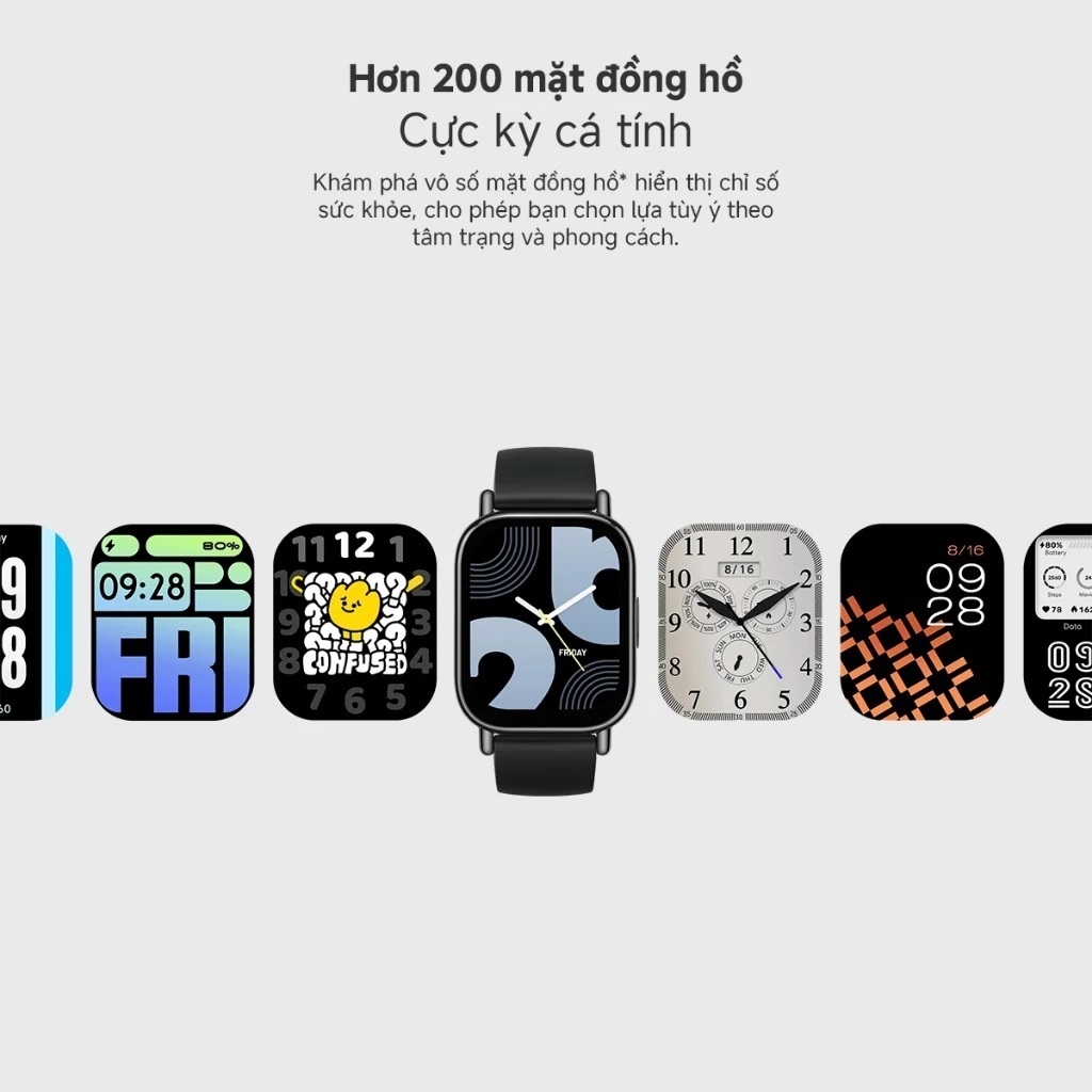 - Màn hình AMOLED 1.75” – Hiển thị sắc nét, thao tác mượt mà - Thiết kế vuông hiện đại – Thời trang, phù hợp nhiều phong cách - Theo dõi sức khỏe 24/7 –
