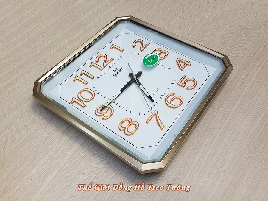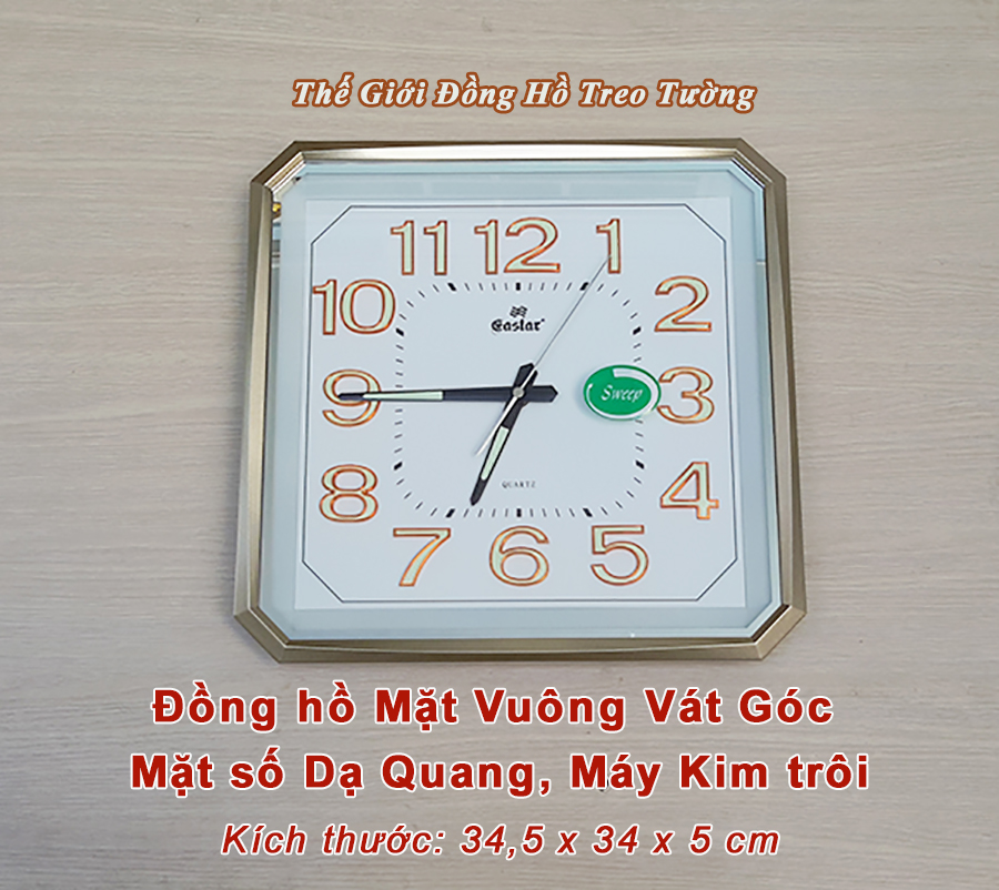 • Đồng hồ Treo tường Cao Cấp EASTAR Kim Trôi Nhật có Dạ quang (*), mặt vuông vát góc, kích thước 34,5 x 34, dày 5 cm.