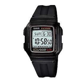 Đồng hồ nam Casio F-201WA-1ADF là mẫu đồng hồ có thiết kế thể thao thanh lịch kế tiếp theo dòng kinh điển của Casio F91 với mặt vuông phù hợp với lứa tuổi học sinh và sinh vên thậm chí người đi làm đeo khi tập thể thao. Đồng hồ nổi tiếng bởi sự bền bỉ, độ chính xác và tuổi thọ pin lâu.