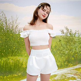 Áo croptop bo chun xinh xắn Đường may sắc nét, chỉnh chu từng chi tiết Kiểu dáng thời trang trẻ trung, hiện đại, phù hợp đi làm, đi chơi Chất liệu xô đũi co giãn