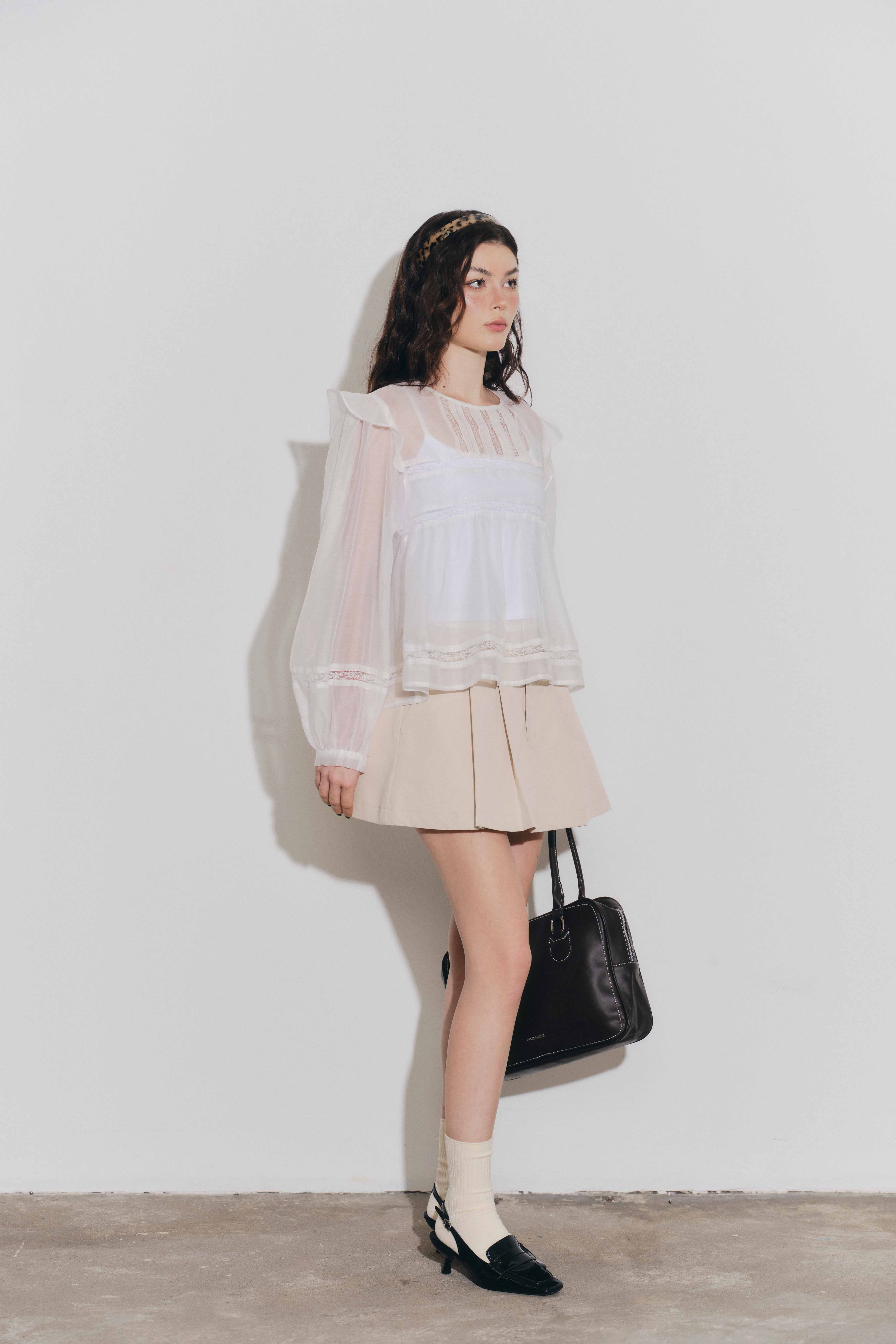 ✨DOTTIE - Áo phối đăng ten và ly - Trắng - T1132