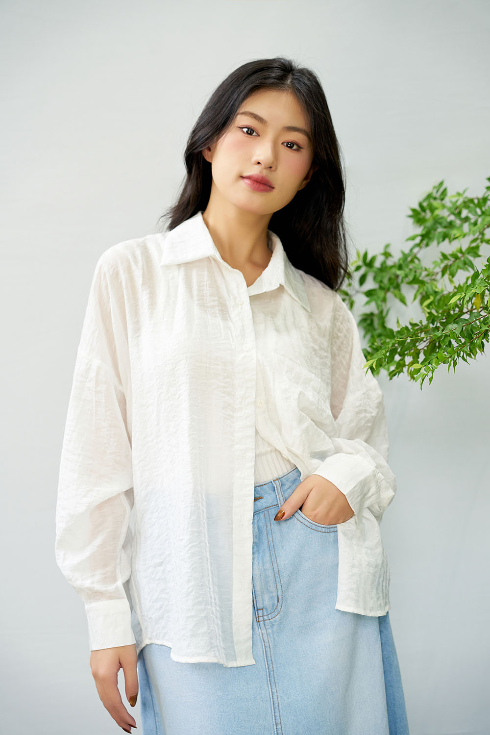 Áo sơ mi nữ là sản phẩm không thể thiếu trong tủ đồ của phái nữ. Thiết kế đơn giản, dáng dài phong cách thanh lịch, trẻ trung Áo tay bồng có khuy cài cực