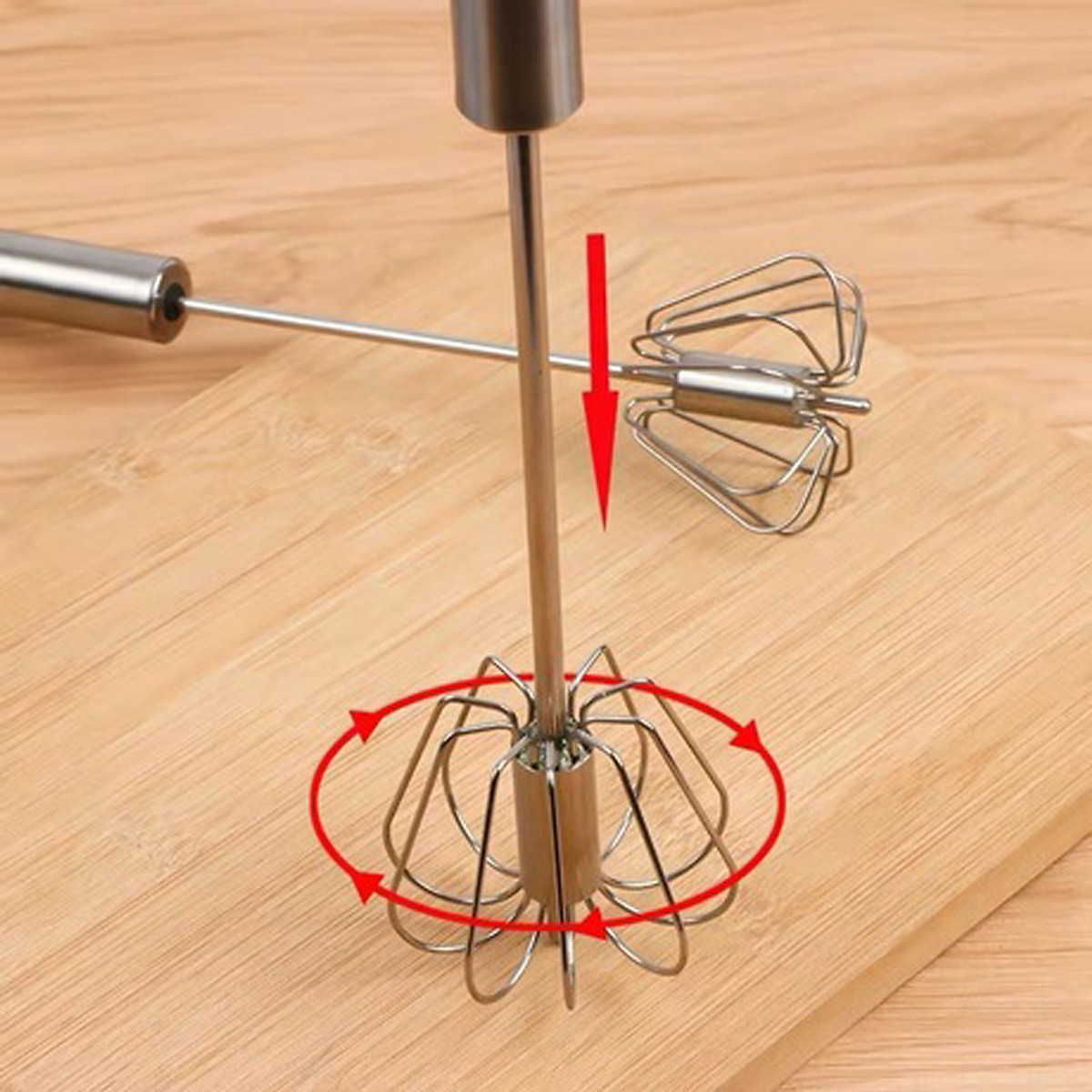 Cây Đánh Trứng Inox 430 Cao Cấp Trục Lò Xo Trợ Lực Tự Xoay Thông Minh
