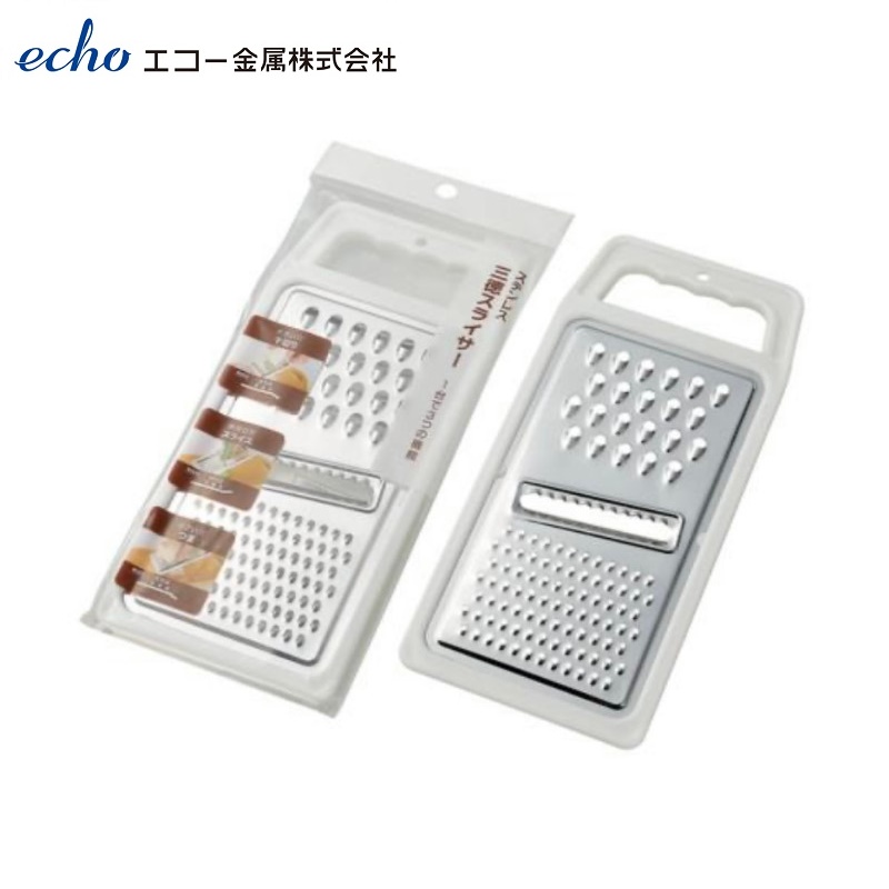 Dụng cụ thái lát, bào sợi cầm tay 3 chức năng Echo ■ Xuất xứ: Nhật Bản | MADE IN JAPAN ■ Kích thước:112×245mm ■ Màu sắc: Màu trắng bạc ■ Chất liệu: - Thân bằng thép cao