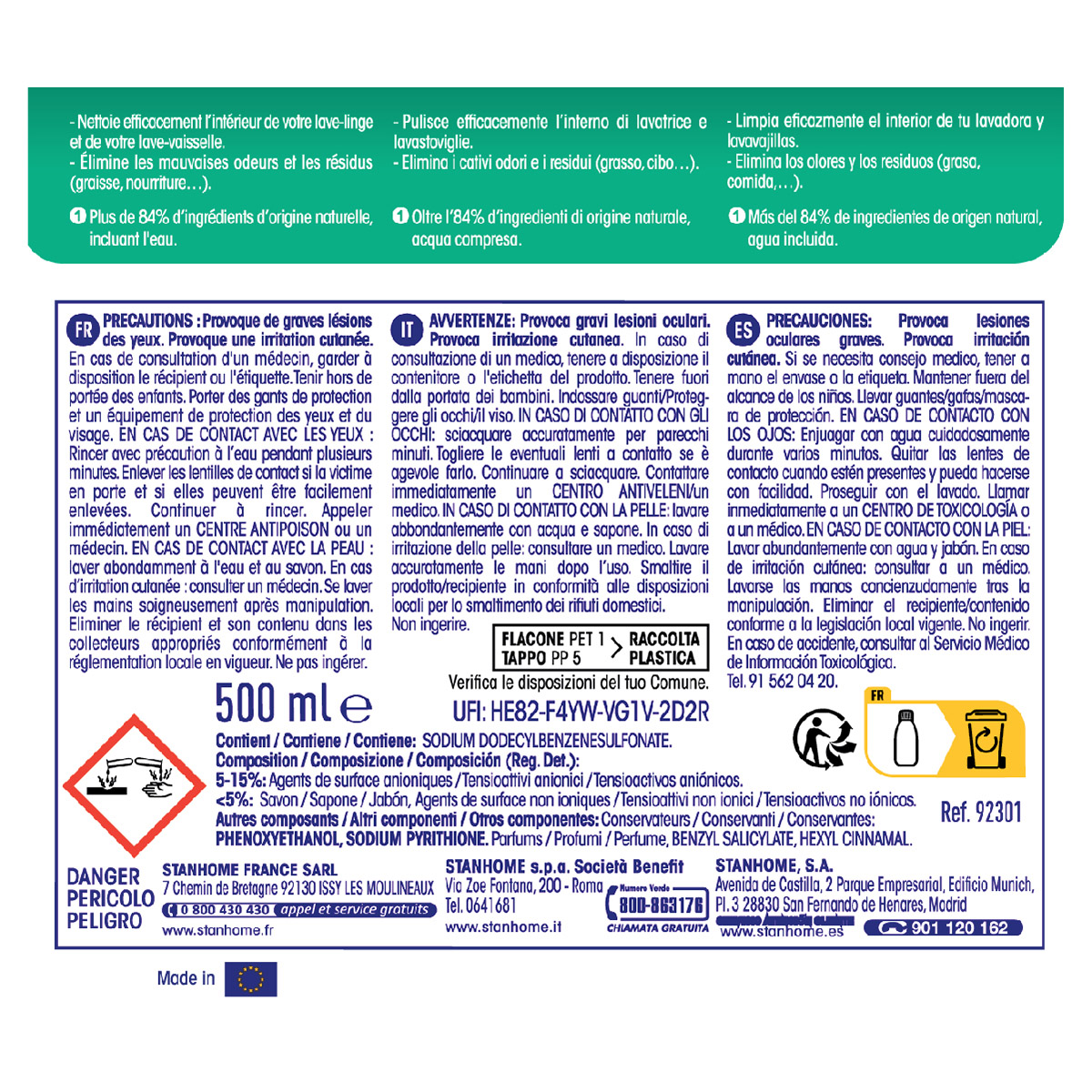 - Không sử dụng dung dịch nguyên chất trên bề mặt kim loại. Chỉ với 1 sản phẩm duy nhất trên thị trường dùng được cho cả máy giặt và máy rửa chén Phụ kiện: Nắp đong doseur giúp việc căn chỉnh lượng dùng được chính xác. Stanhome Machine Booster lựa chọn đúng đắn cho bạn và gia đình: