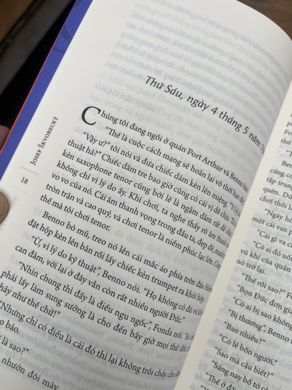 Tác giả: Josef Škvorecký (27/9/1924 Tiệp Khắc – 3/1/2012 Canada) là nhà văn và dịch giả người Séc, với khối lượng tác phẩm đồ sộ. Ông là một trong những nhà văn lớn của văn học hiện đại Séc nửa sau thế kỷ 20 đồng thời là dịch giả có uy tín, người đã đưa các tác giả nổi tiếng của văn học Mỹ đến với độc giả Séc. Ông đã được tặng nhiều giải thưởng văn học trong và ngoài nước: giải thưởng của Hội Nhà văn Tiệp Khắc (1963), giải thưởng Nhà văn Tiệp Khắc (1966), giải Văn học Quốc gia (1999), giải Jaroslav Seifert (2004), giải thưởng của Toàn quyền Canada cho tiểu thuyết hay nhất (1984), giải của Quỹ Echoing Green – New York (1990), Huân chương Nghệ thuật và Văn học của Pháp (1996) Giải thưởng danh giá nhất ông được trao tặng là giải Văn học quốc tế Neustadt năm 1980. Từ năm 2007, Séc có thêm giải thưởng văn học mang tên Josef Škvorecký, trao tặng cho tác giả Séc có sáng tác văn xuôi hay nhất của năm. Dịch giả Bình Slavická sinh năm 1954 tại Hưng Yên. Bà tốt nghiệp khoa Xây dựng, Đại học ČVUT tại Praha (1979), đạt học vị tiến sĩ ngành Khoa học Lịch sử và Dân tộc học, khoa Triết trường Đại học Charles Praha (2016). Hiện bà sinh sống và làm việc ở Cộng hòa Séc, là giảng viên ngành Việt Nam học thuộc Viện châu Á học, Đại học Charles. Dịch giả Bình Slavická là người Việt duy nhất được trao giải Gratias agit 2022 vì những đóp góp to lớn trong việc truyền bá văn hóa, con người Cộng hòa Séc ở nước ngoài.