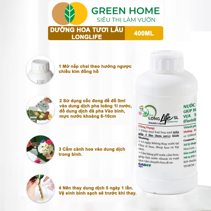💖 GIÁ SỈ SIÊU LỢI:💲Giá chỉ còn 69k 🔅 Số lượng: 60 chai💲Giá chỉ còn 79k 🔅 Số lượng: 30 chai Dưỡng Hoa Lâu Tàn Greenhome, Longlife, Chai 400ml, Nhập Khẩu ...