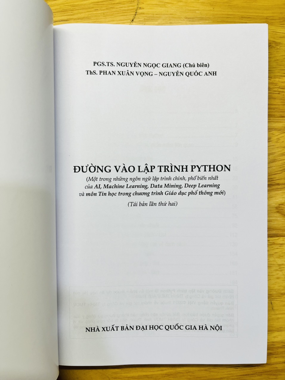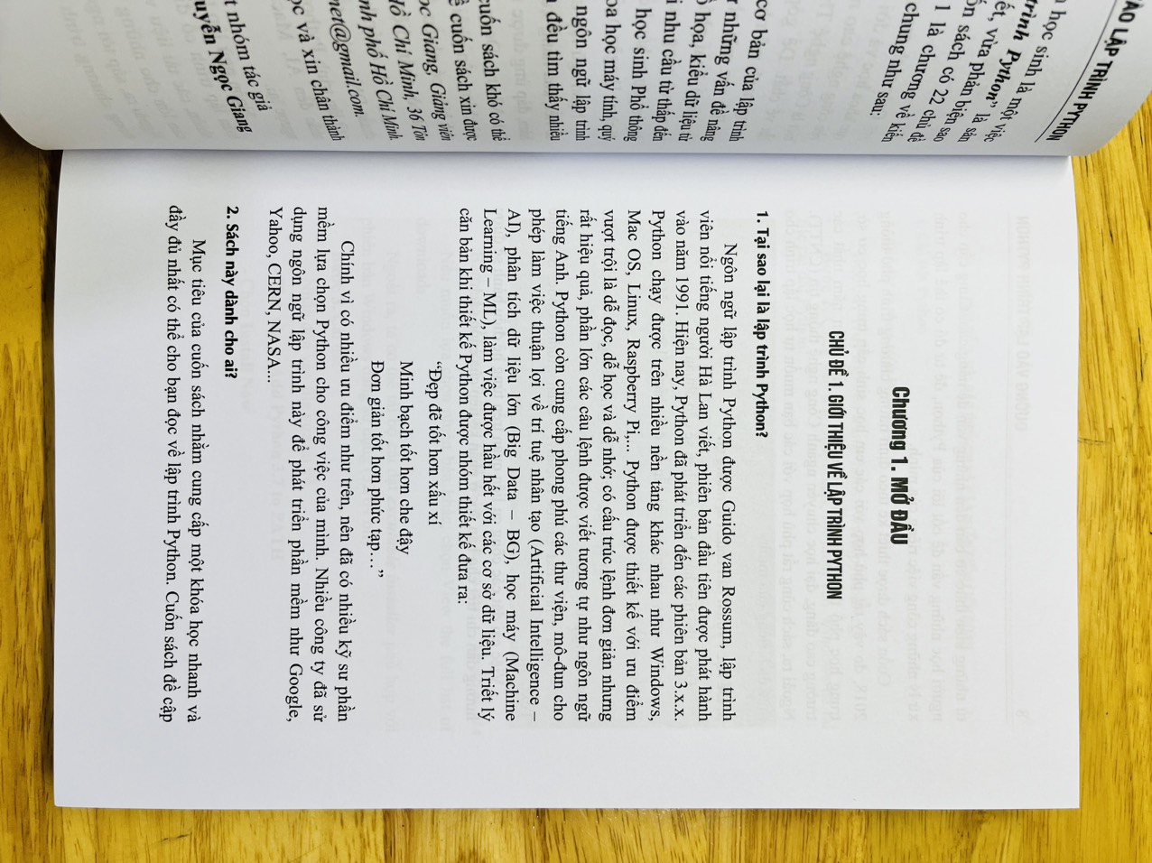 Sách Đường Vào Lập Trình Python Ngôn ngữ lập trình Python không những đáp ứng được yêu cầu của các bài toán lập trình cổ điển trước đây mà còn đáp ứng được các bài toán lập trình mới. Tuy nhiên, các tài liệu về lập trình Python ở nước ta còn thiếu. Đó là rào cản lớn cho những bạn muốn sử dụng ngôn ngữ này trong lập trình. Ngoài ra, sắp tới ngôn ngữ lập trình Python sẽ được đưa vào giảng dạy trong chương trình giáo dục phổ thông môn Tin học nên việc biên soạn tài liệu có chất lượng về Python cho các em học sinh là một việc làm rất cần thiết. Cuốn sách Sách Đường Vào Lập Trình Python là sản phẩm "thai nghén" trong một thời gian dài vừa viết, vừa phản biện sao cho thành phẩm cuối cùng được ưng ý nhất. Cuốn sách có 22 chủ đề được viết theo lối viết sưu phạm. Ngoài ra chương 1 là chương về kiến thức mở đầu ra thì các chươn còn lại có cấu trúc chung như sau: A. Đặt vấn đề B. Bài tập ôn luyện C. Thuật toán và hướng dãn giải Nội dung cuốn sách bàn về những vấn đề cơ bản của lập trình như cấu trúc lặp, kiểu dữ liệu chuỗi, … cũng như những vấn đề nâng cao, hiện đại như quay lui, hàng đợi, ngăn xếp, đồ họa,kiểu dữ liệu từ điển, …Chính vì thế cuốn sách đáp ứng được mọi nhu cầu từ thấp đến cao, từ đơn giản đến phức tạp của tất cả các em học sinh phổ thông, Trung học, sinh viên, học viên cao học ngành Khoa học máy tính, quý thầy cô và nhà nghiên cứu muốn tìm hiểu về ngôn ngữ lạp trình Python. Những ai quan tâm đến lập trình Python đều tìm thấy nhiều điều bổ ích từ cuốn sách Sách Đường Vào Lập Trình Python.