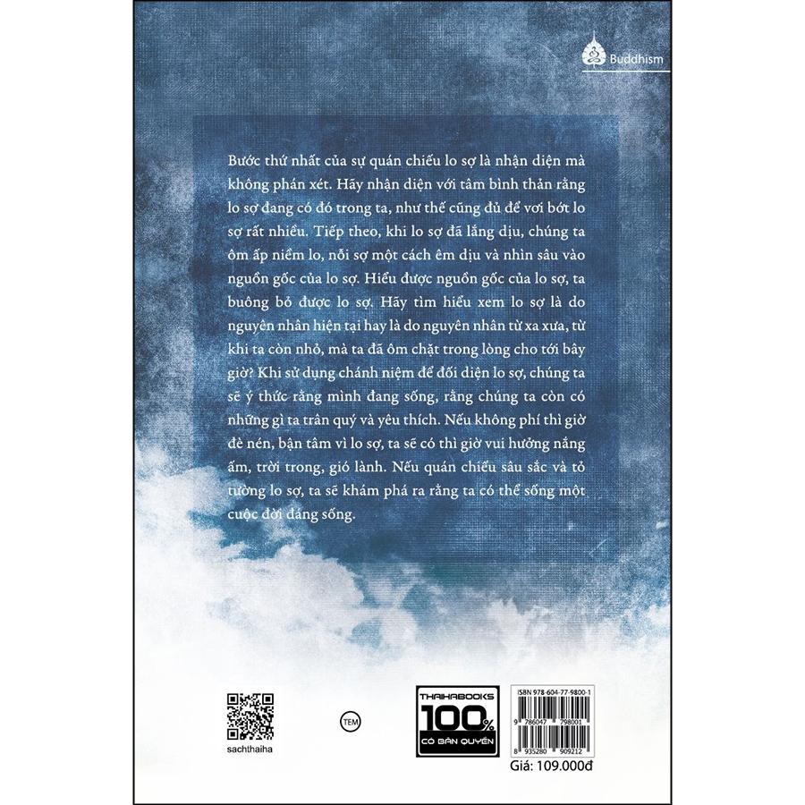 Tất cả chúng ta ai cũng từng lo sợ, nhưng nếu chúng ta biết nhìn sâu vào lo sợ thì ta có thể giải tỏa lo sợ và tìm lại nguồn vui. Lo sợ khiến chúng ta chú tâm về quá khứ hoặc lo lắng cho tương lai. Nếu chấp nhận lo sợ thì ta khám phá ra rằng ngay lúc này, hôm nay đây ta còn sống, cơ thể ta đang hoạt động diệu kỳ, mắt ta đang thấy được trời xanh, tai ta còn nghe được tiếng nói của người ta thương.