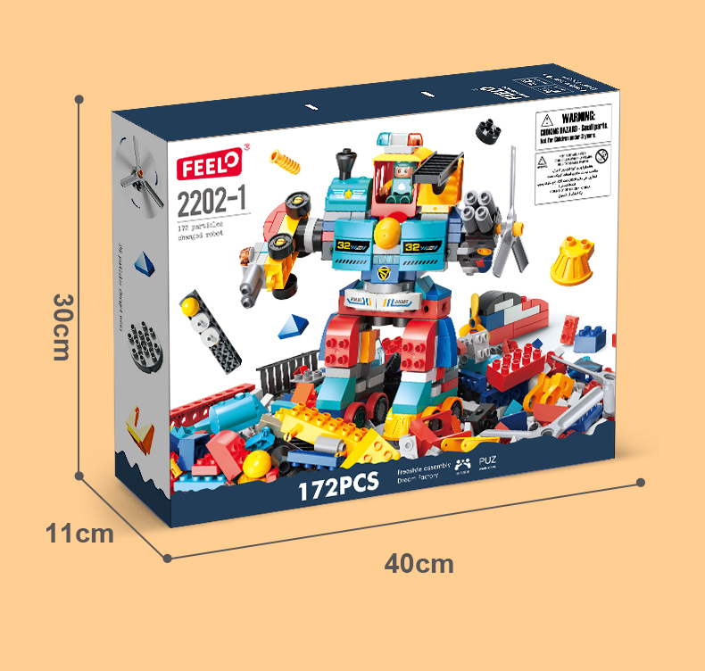 Mua tại TiktokRobot chiến binh lắp ráp – FEELO (172 PCS) – Bộ đồ chơi lắp ráp robot chiến đấu đa năng với thiết kế mạnh mẽ, tích hợp nhiều chi tiết mô phỏng như cánh quạt, xe, – Gồm 172 chi tiết nhỏ, màu sắc sinh động, dễ lắp ráp theo hướng dẫn hoặc sáng tạo thành mẫu robot riêng – Giúp bé phát triển tư duy logic, kỹ năng vận động tinh và khả năng sáng tạo qua các hoạt động lắp ráp