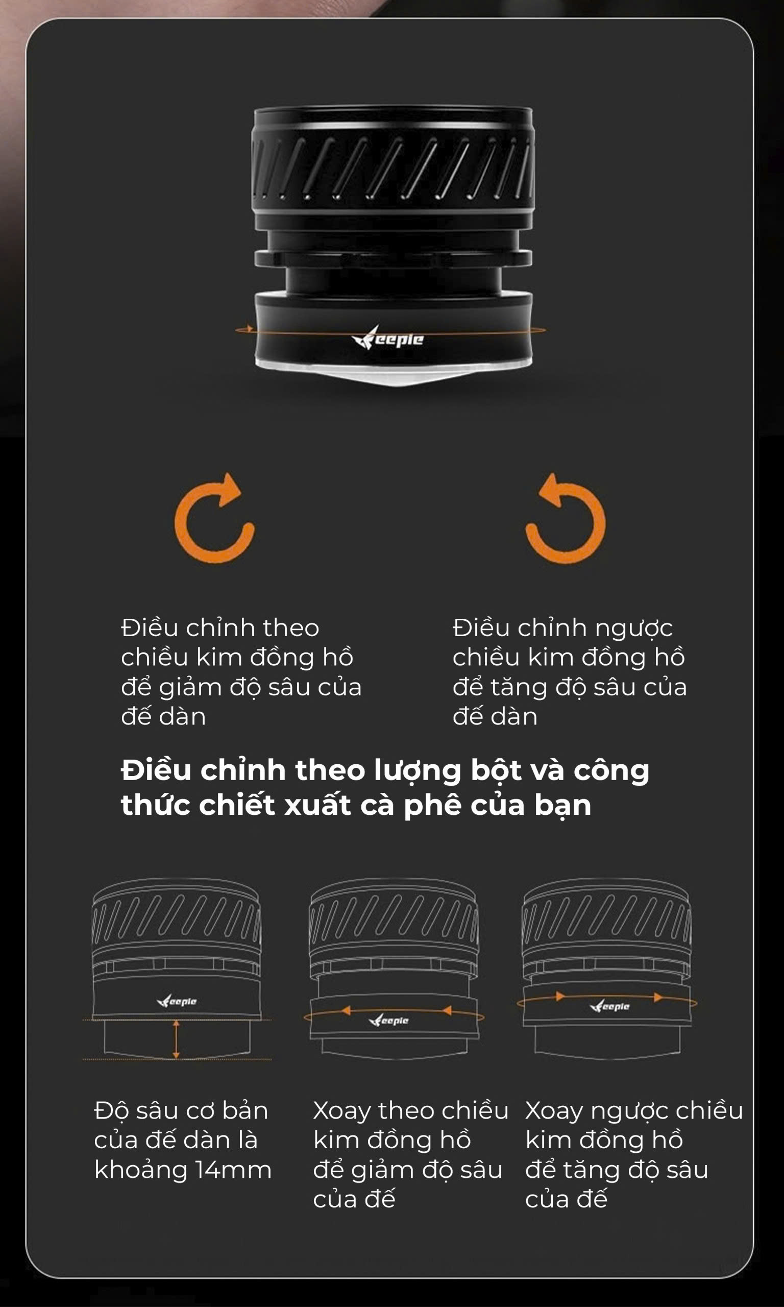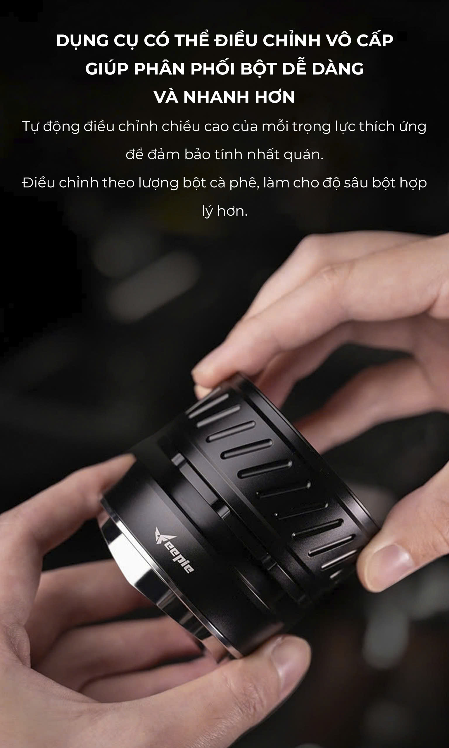 FEEPIE KIM XOAY TÁN BỘT CÓ VÒNG ĐỆM CAO SU – TỐI ƯU CHIẾT XUẤT, CẢI THIỆN CREMA! Bạn muốn phân bố bột cà phê đều hơn, hạn chế kênh rãnh để có chiết xuất