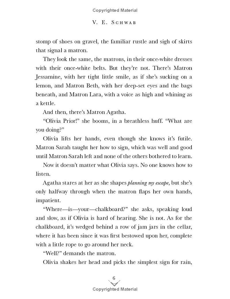 New York Times–bestselling author V. E. Schwab crafts a vivid and lush novel that with the demons that are often locked behind closed doors. An eerie, stand-alone saga about life, death, and the young woman beckoned by both. Readers of Neil Gaiman, Holly Black, Melissa Albert, and Garth Nixwill quickly lose themselves in this novel with crossover appeal for all ages.