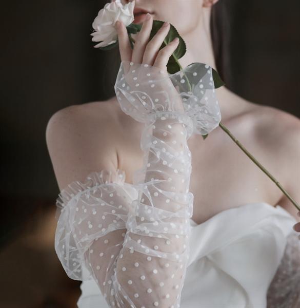 Găng tay ngắn: Lựa chọn hoàn hảo cho những cô dâu thích phong cách trẻ trung, nhẹ nhàng. Găng tay ngắn dễ dàng kết hợp với váy cưới ngắn hoặc kiểu dáng tối giản nhưng không kém phần quyến rũ.
