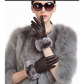 Thiết kế nổi bật bề mặt trần trám cùng bo lông tại cổ tay tạo điểm nhấn sang chảnh, quý phái và cực ký nữ tính. Bên trong găng tay da cũng được lót 1 lớp lông thỏ mềm mịn, ấm ấp. Mùa đông năm nay có xuống mấy độ cũng chẳng ngại chi.