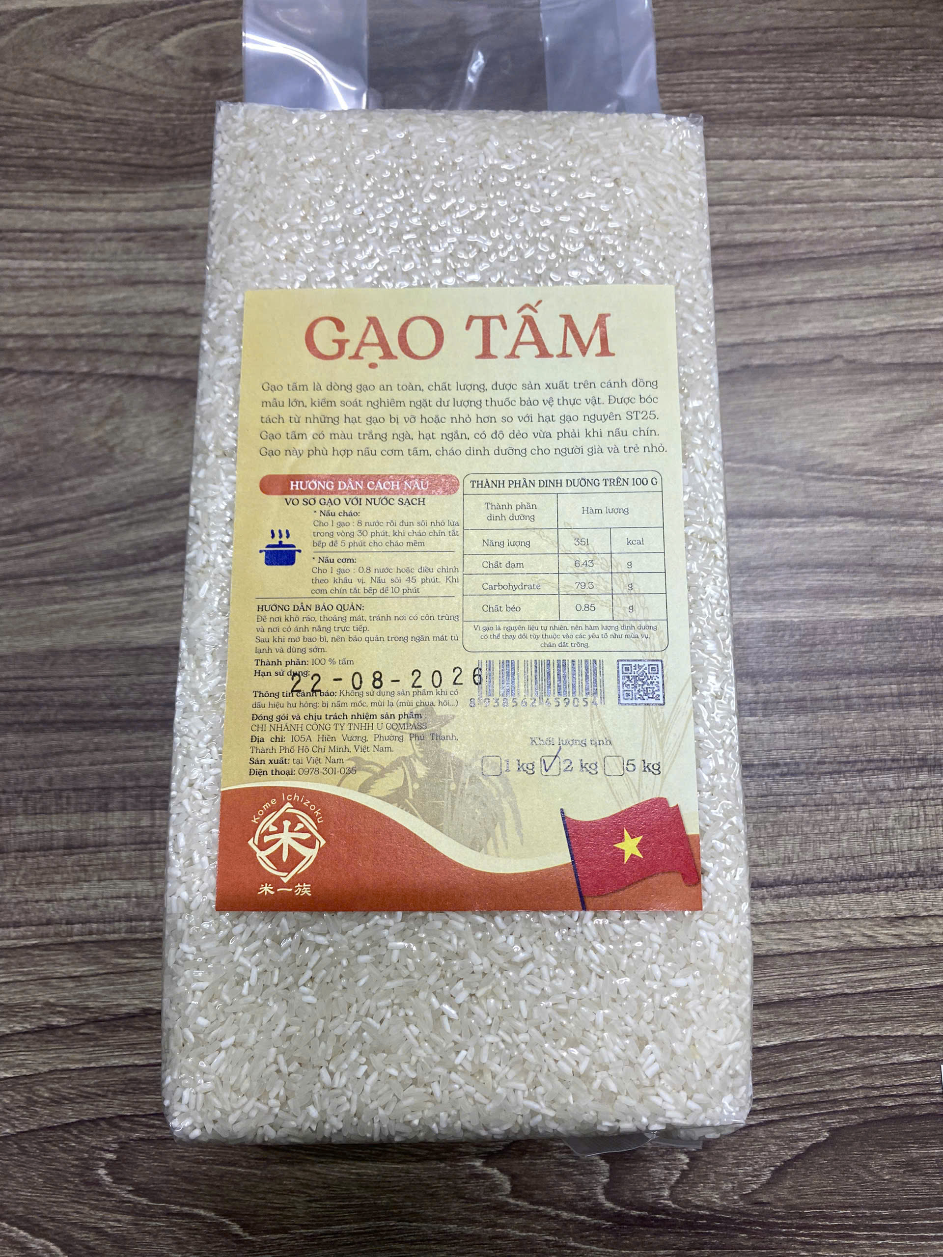 Bao bì: hộp 1KG - HSD : 12 tháng kể từ ngày sản xuất - Xuất xứ: Việt Nam - Đặc điểm + Gạo tấm thơm, dẻo, có vị ngọt và mùi thơm đặc trưng