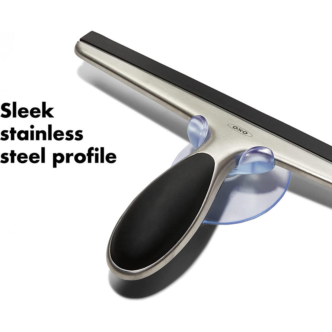 Cây lau kính OXO Good Grips lau sạch cửa sổ, bề mặt lát gạch, gương, cửa phòng tắm, Lưỡi linh hoạt của Squeegee cũng hoạt động trên các bề mặt gợn sóng và phần tay cầm mềm sẽ không tuột khỏi tay bạn, ngay cả khi bị ướt. Vắt lưu trữ thuận tiện trên tường với một cốc hút đi kèm.