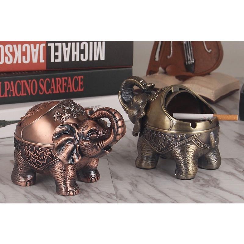 Gạt tàn thuốc lá hình tượng Voi cổ có nắp kéo đậy kín độc đáo GTT117 | Quang Duy Plasma