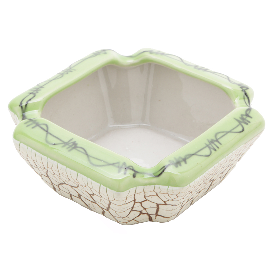 - Gạt tàn được làm bằng chất liệu gốm sứ tráng men sáng bóng, chịu nhiệt cao nên khi bạn đựng tàn thuốc sẽ không lo để lại dấu vết hay hoen ố gạt tàn.