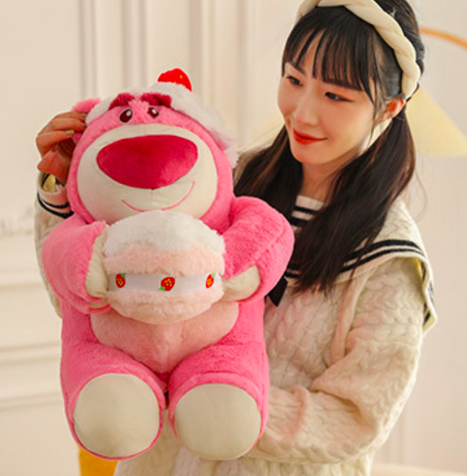 Gấu Dâu Lotso Huggin Bear Nằm Lông Xù Tai Dâu cực Cute, Thú nhồi Bông Hoạt Hình Lotso Đáng yêu | Cộn