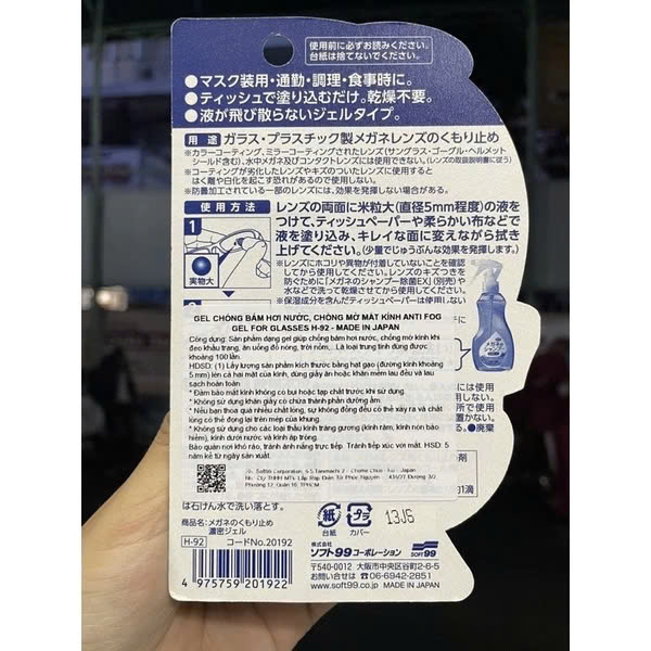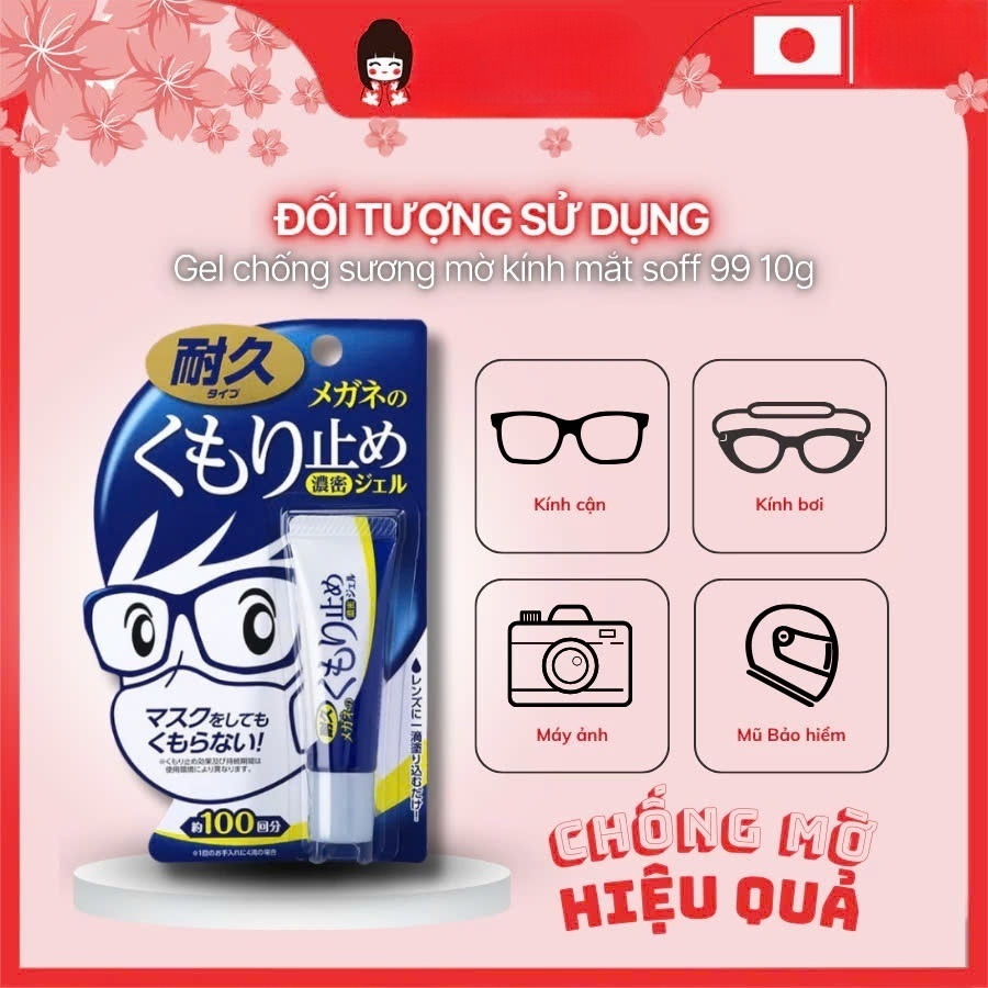 Gel lau kính chống bám hơi nước, sương mù cho mắt kính cận, kính lặn, mũ bảo hiểm Soft 99 Nhật Bản