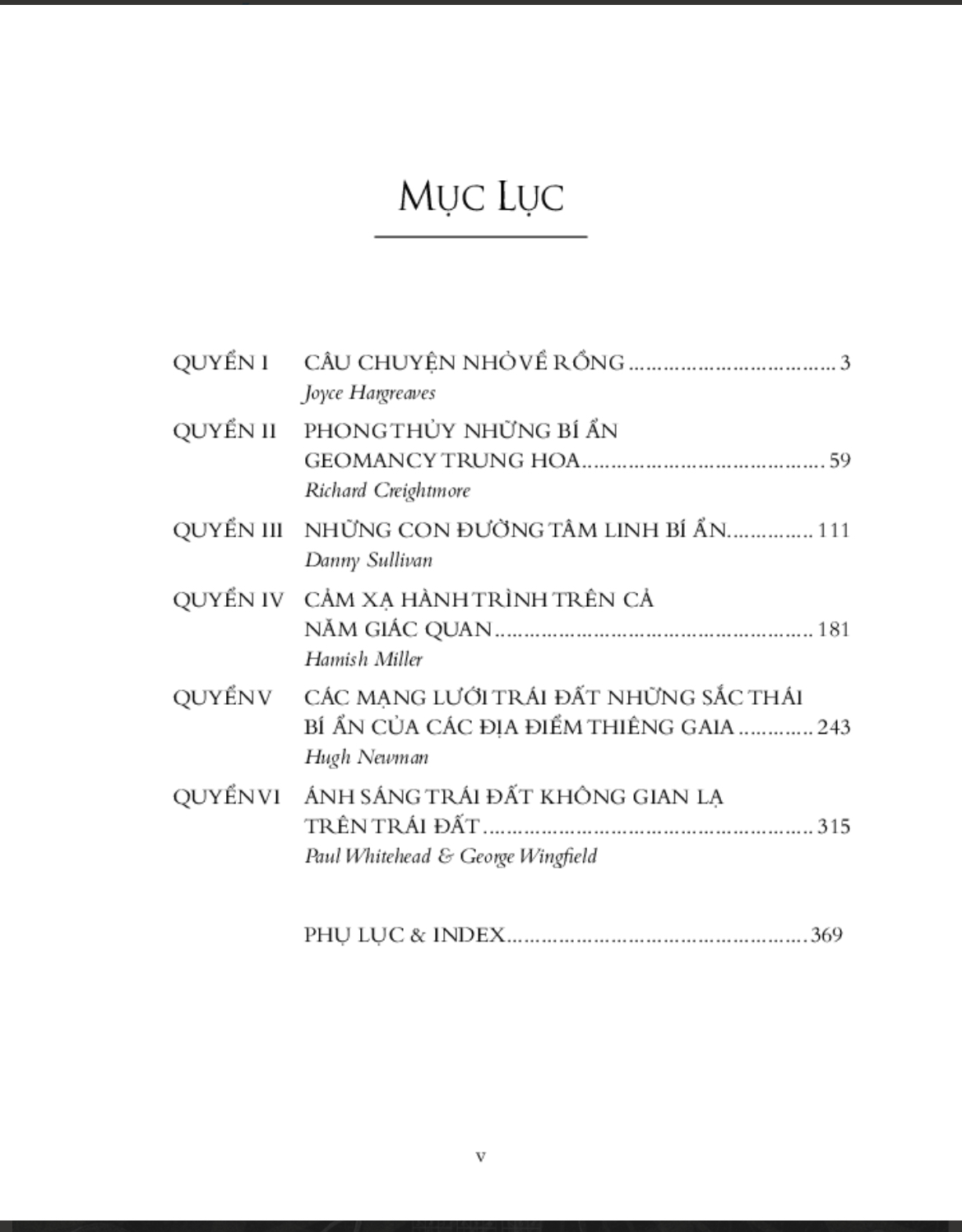 Geomancy, có gốc từ tiếng Hy Lạp, có nghĩa là “thuật tiên tri về Trái đất”, hay nghệ thuật giúp thấu hiểu hoàn cảnh bằng các phương tiện huyền bí liên quan đến Trái đất. Trong cuốn sách bạn đang cầm trên tay, thuật ngữ này bao trùm toàn bộ lĩnh vực mà trong những thập niên gần đây được gọi là “Bí ẩn Trái đất”. Nó bao gồm từ việc nghiên cứu các đường ley và cảm xạ học cho đến việc chọn địa điểm để xây cất các công trình cổ: những người thợ xây khéo léo sử dụng que cảm xạ để dò tìm những đường ống bị chôn vùi. Cùng theo cách đó, các nhà châm cứu cũng dò tìm những đường năng lượng vô hình trên cơ thể người, và nhiều người đã trải nghiệm những hiệu ứng thị giác và thính giác kỳ lạ khi đứng trước những vòng đá cổ. Liệu có còn những nguồn năng lượng tiềm ẩn nào khác trong con người và Trái đất hay không?Từng chương một trong sách sẽ giúp chúng ta trả lời câu hỏi này: từ Rồng - con vật gác cổng biểu tượng cho những bí ẩn Trái đất đến những điều tinh tế của trường phái geomancy cổ xưa và hoàn chỉnh nhất; thế giới bí ẩn của các đường ley; lịch sử và nghệ thuật thần bí trong Cảm xạ học; bằng chứng về một mạng lưới toàn cầu cổ xưa về các cấu trúc bói đất và cuối cùng là thế giới kỳ lạ của các Ánh sáng Trái đất.Thế giới của chúng ta rất có thể không giống như ta nghĩ.