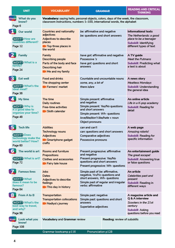 English World Level 5 Pupil's Book + eBook Pack The Pupil's Book contains twelve units with each unit designed to be taught over a two-week period. The key skills of reading, writing, speaking and listening