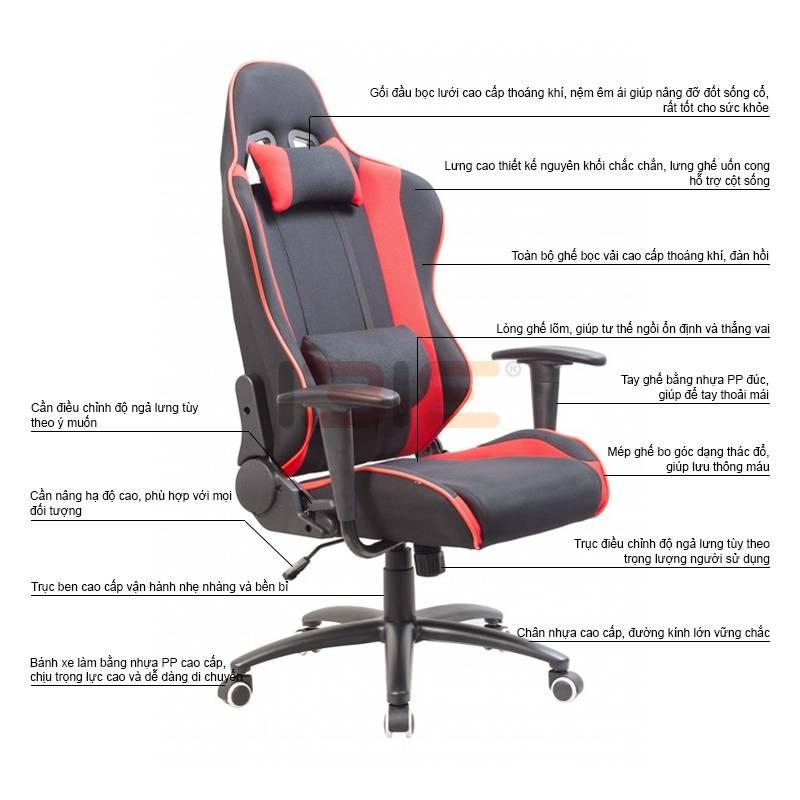 Đặc điểm nổi bật Thiết kế công thái học: hỗ trợ cột sống, giảm đau mỏi lưng – cổ khi ngồi lâu. Lưng lưới thoáng khí: ngồi thoải mái, không nóng lưng. Đệm mút bọc