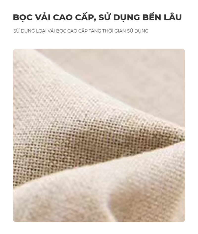 - Chất liệu: Khung gỗ Plywood phủ sơn mờ an toàn, không độc hại, thân thiện với môi trường - Mặt đệm mút phủ vải dệt bền đẹp, êm ái.