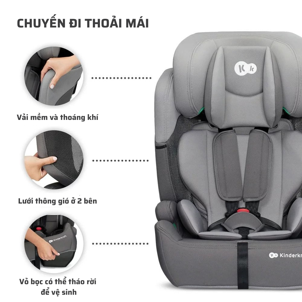 Ghế Ngồi Ô Tô 3 Giai Đoạn KuKu KU6020 thiết kế khung vững chắc nhớ phần đế bằng nhựa có các đầu nối an toàn, có thể đặt phía sau xe để giữ cho bé tư