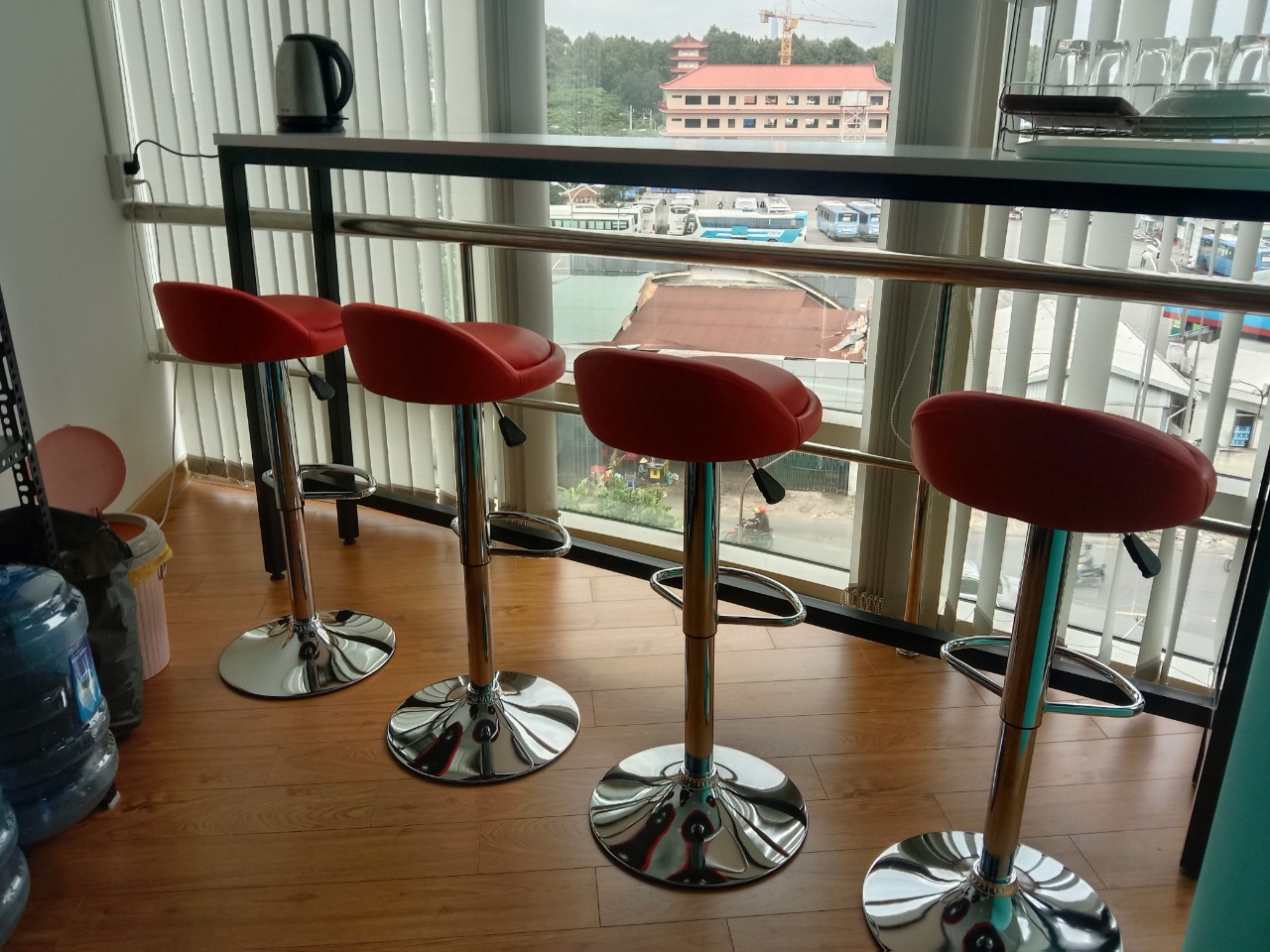 Ghế quầy bar hiện đại, có tay và lưng tựa. Được thiết kế với dáng vẻ thanh lịch hiện đại và tinh tế. Màu sắc: đen, đỏ, nâu, hồng , cam Chất liệu: PVC, chân thép